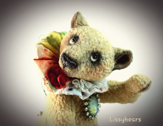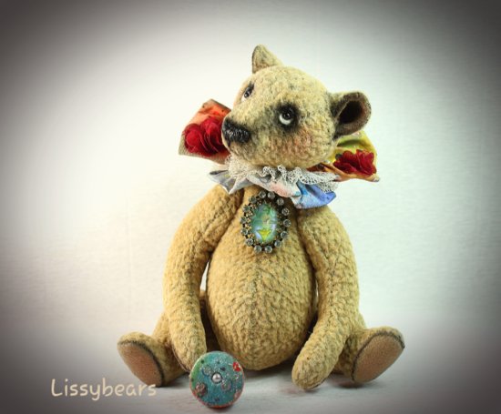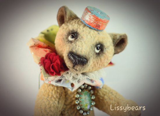 His cap and his collar are sewn with cotton and paintet by hand with art acrylics.