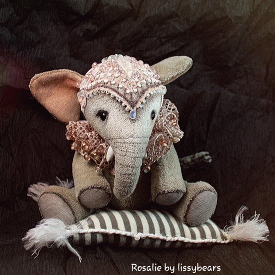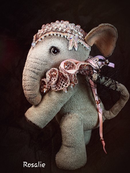 Rosalie the elepant girl is made from vintage German plush in silvergrey.